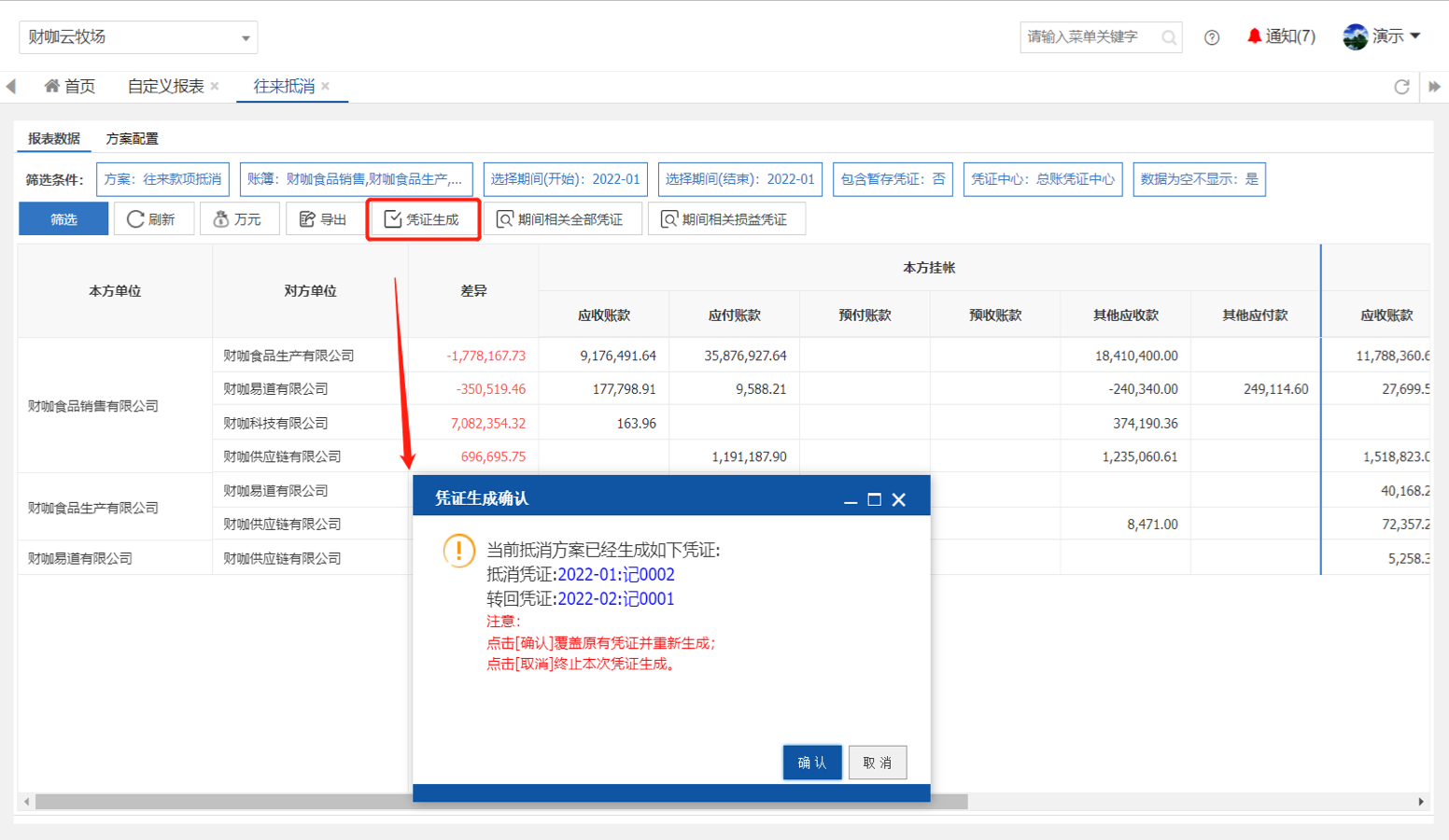 往來抵消免上報,1鍵生成核對表,并1鍵生成抵消憑證,支持自定義配置往來科目,自動生成權(quán)益憑證