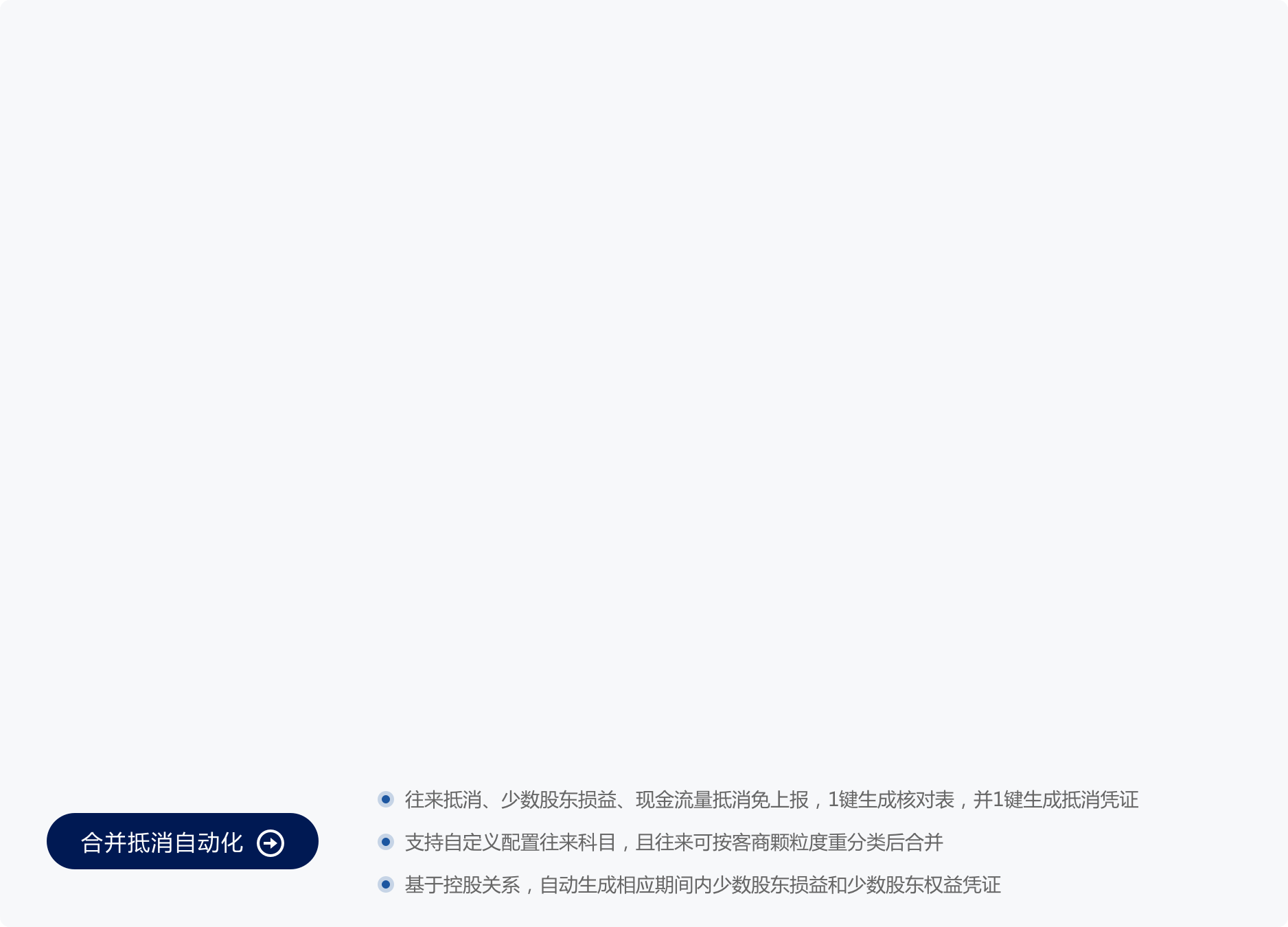 1鍵對賬,1鍵生成合并抵消憑證,報表合并過程簡單,合并效率高